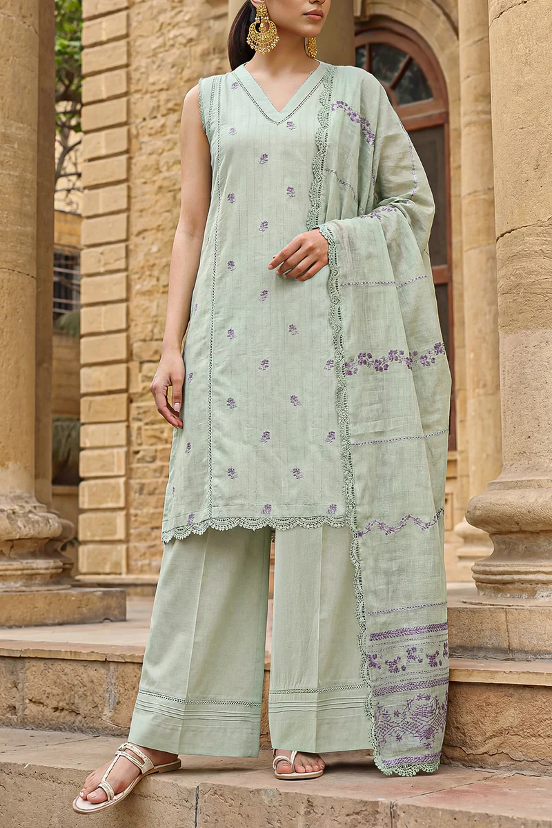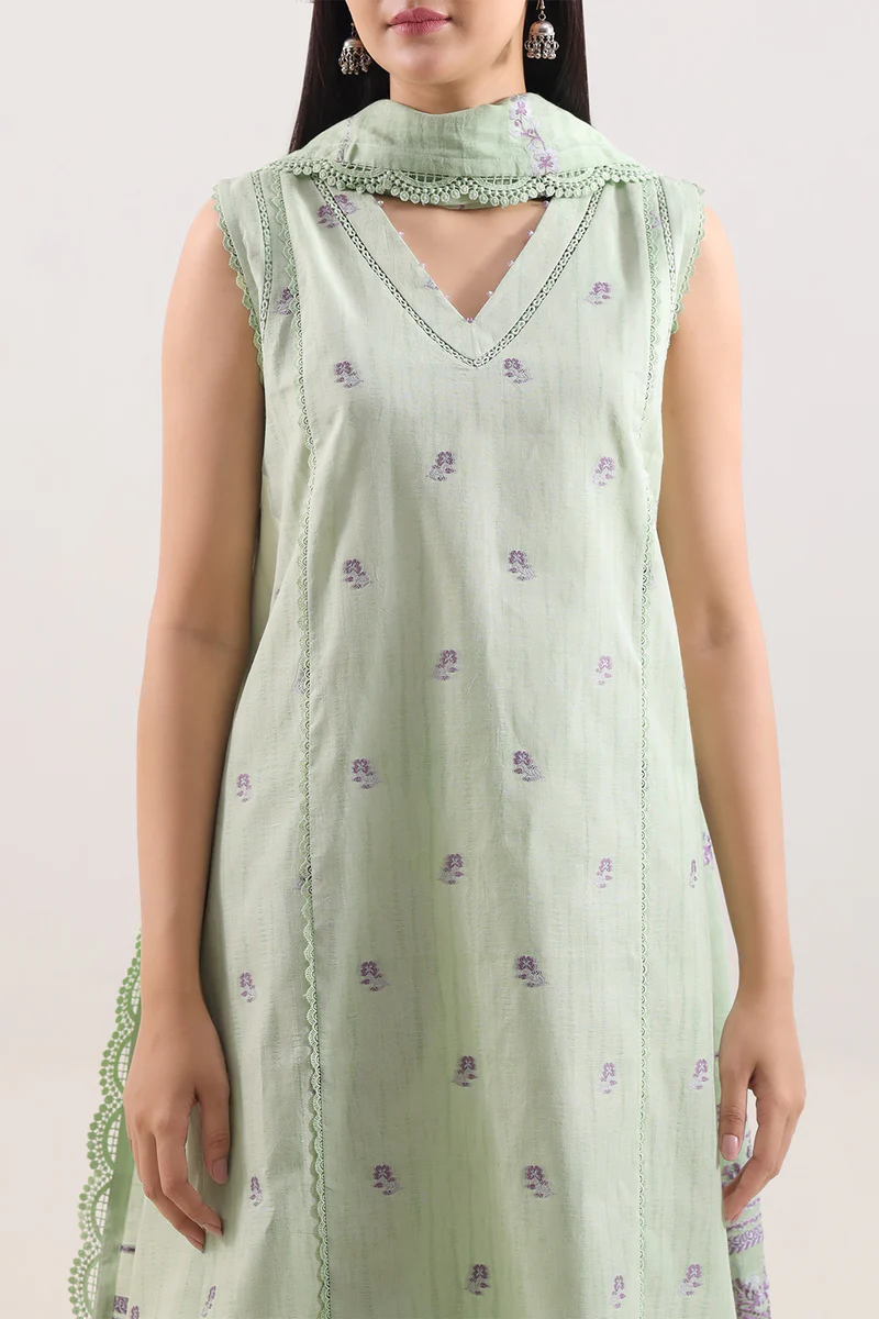 Indulge in baroque-inspired grandeur with Velure Fabrics unstitched jacquard cotton trio. Woven from substantial, premium cotton, this luxurious ensemble features an intricate all-over floral jacquard that creates depth and a striking three-dimensional texture. Designed for grand wedding receptions, black-tie charity events, and formal galas, it makes a powerful, heirloom-worthy statement of enduring elegance.